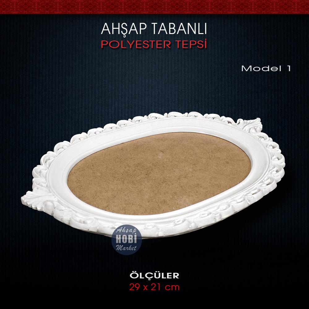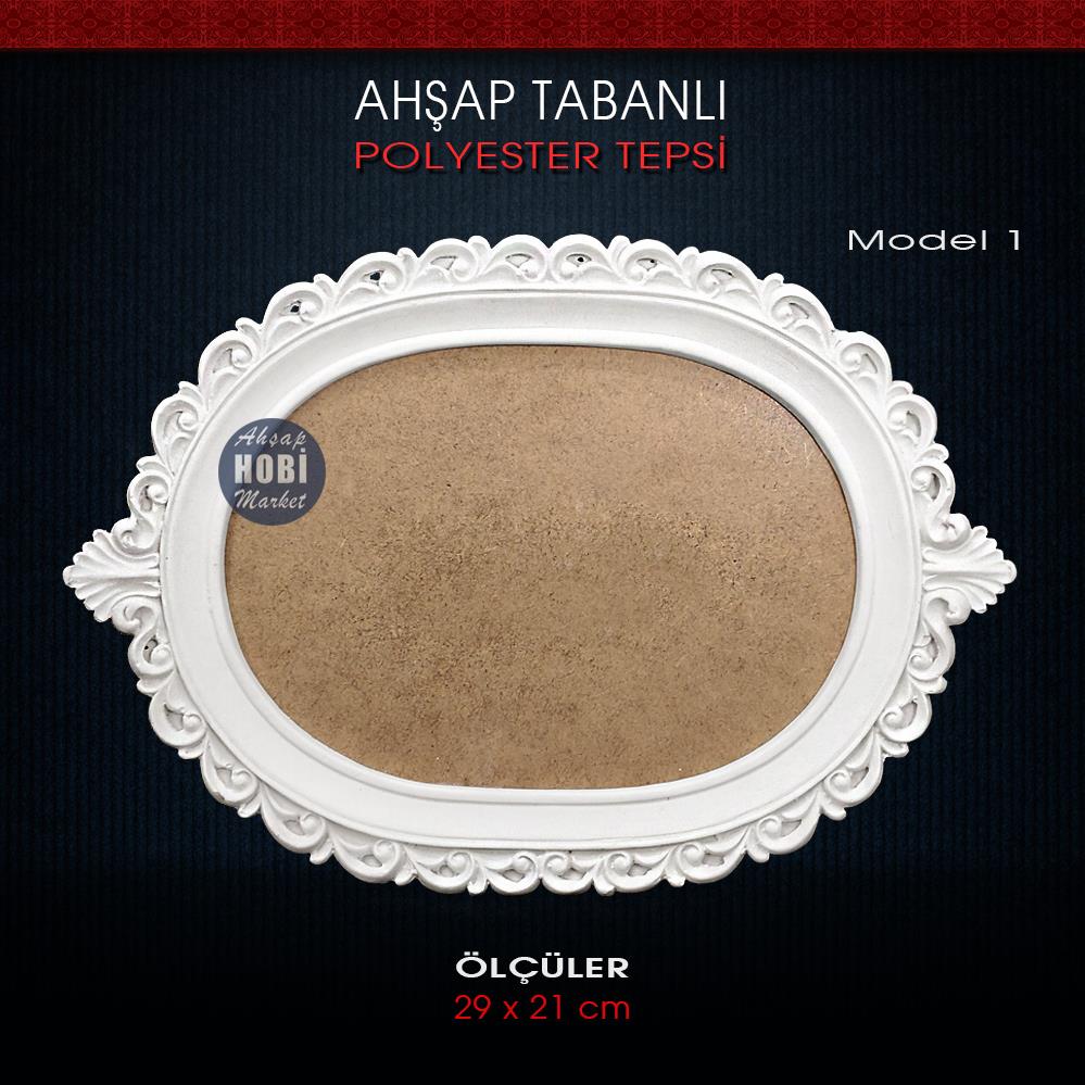 Ham polyester ahşap tabanlı tepsi, 29 cm genişliğinde, 21 cm eninde ve en kalın noktası zeminden 2,5 cm yükseklikte, içi dolu ve her türlü boyaya uygun, kaliteli işçilikle üretilmiş, işlevsel polyester tepsidir.