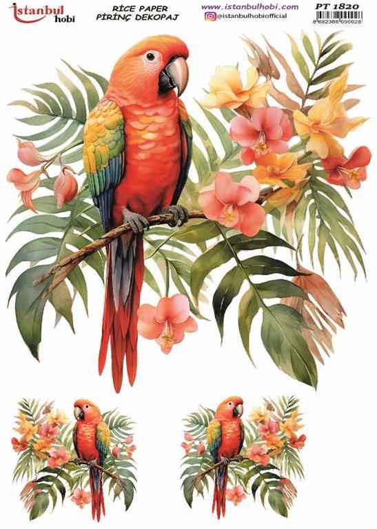 Çiçek Papağan Desenli Pirinç Dekopaj - Model : PT 1820