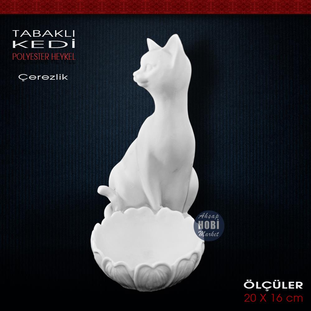 Polyester Tabaklı Kedi Biblo 16 cm genişliğinde 20 cm yüksekliğinde 10,5 cm derinliğinde üç boyutlu bir aksesuar objedir. Kedi Biblonun Tabağı 9 cm çapındadır.